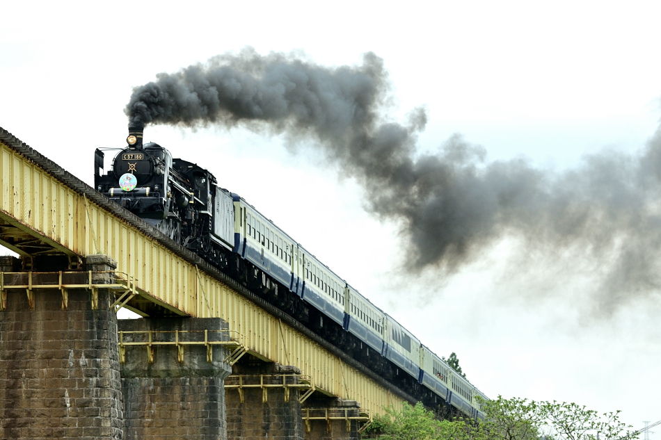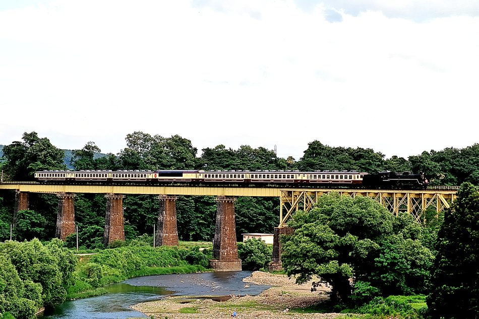 塗装作業中の一ノ戸橋梁を渡るC57180 (2022/10/30追加) |