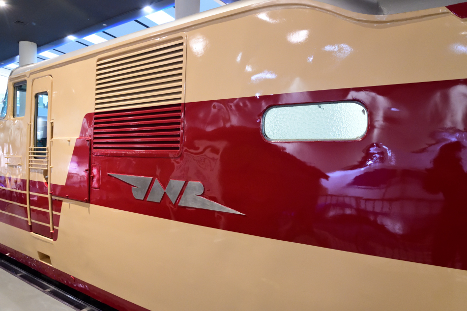 鳥の翼を表した国鉄特急色の斬新な塗装がこの車両の魅力を引き立てています。タブレットキャッチャーは撤去され台座と窓の保護網のみ残存。 (2023/01/14追加) |
