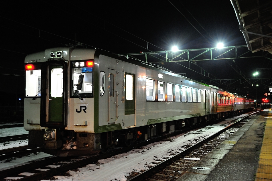 お召列車と交換した新庄行きのキハ110 200番台x2両。 | ||||||||||||||||||||||||||||||||||||||||||||||||||||||||||||||||||||||||||||||||||||||||||||||||||||||||||||||||||||||||||||||||||||||||