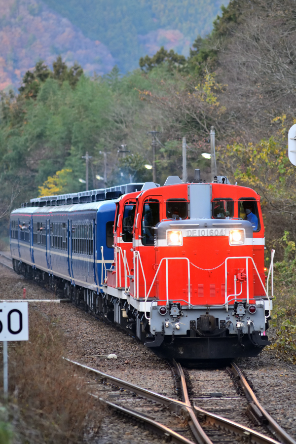 f/2.8を付けましたが,F4で後ろの林までしっかりフォーカスを出してくれました。12系牽引,重連だけでも十分嬉しいのにヘッドマーク無しで最高。 (2022/12/04追加) ![]() |