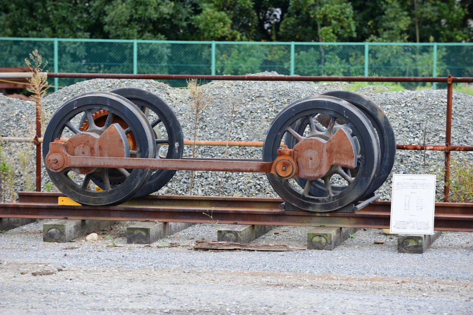 DD501のロッドが保存されています。横のプレートには1960年3月新潟鉄工所で製作され,小名浜臨港鉄道が購入,鮮魚,鉱石,肥料,コークス,化成品などの輸送に活躍したこと,1983年廃車,軸配置:B-B,自重50t,全長14,000mm,など記載されています。 (2022/11/24ワイド化) |