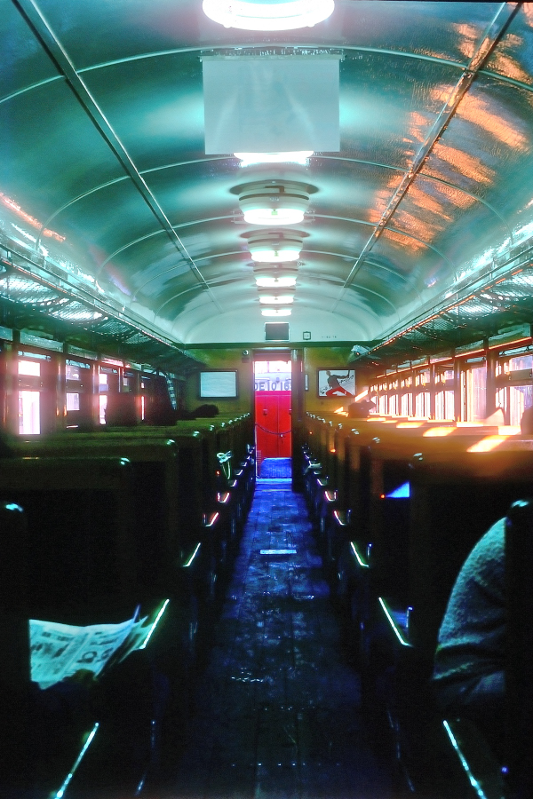 五能線を走行中のオハフ61車内。白熱灯が点いてローカルムードが高まりました。 (2022/10/07追加) |