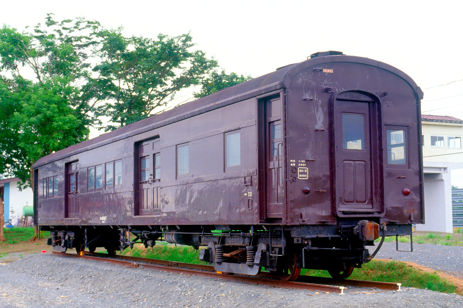 支線で活躍したオハユニ61。普通(旧三等)座席・郵便室・荷物室の合造車で,郵便や荷物輸送量が比較的少ない地方線区の列車で用いられ,全国津々浦々への郵便物輸送に貢献しました。オハユニ61