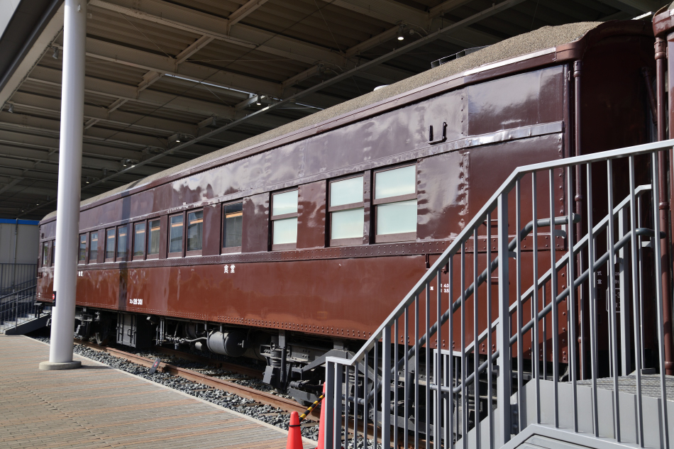 9となり,さらに1944年には戦時輸送力増強のため食堂の客席部分を三等車に改装し,調理室付き三等車マハシ49 14となりました。1953年に旧食堂客席部分を食堂に再改装してスハシ38 102となり,急行「日本海」などに連結され活躍しました。1961年に廃車となり,大阪・弁天町の交通科学館(後に交通科学博物館)に収蔵されました。 (2023/1/4追加) |