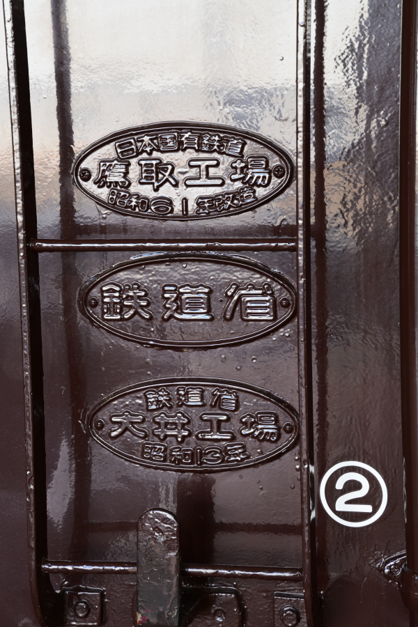 | No.D850_221228-253 2022年12月28日 マイテ49 2 [スハ32系客車] 京都鉄道博物館 下から,鉄道省 大井工場 昭和13年の製造銘板,中央が鉄道省の銘板,上が改造銘板で日本国有鉄道 鷹取工場 昭和61年改造 の文字があります。 (2023/01/05追加) |
