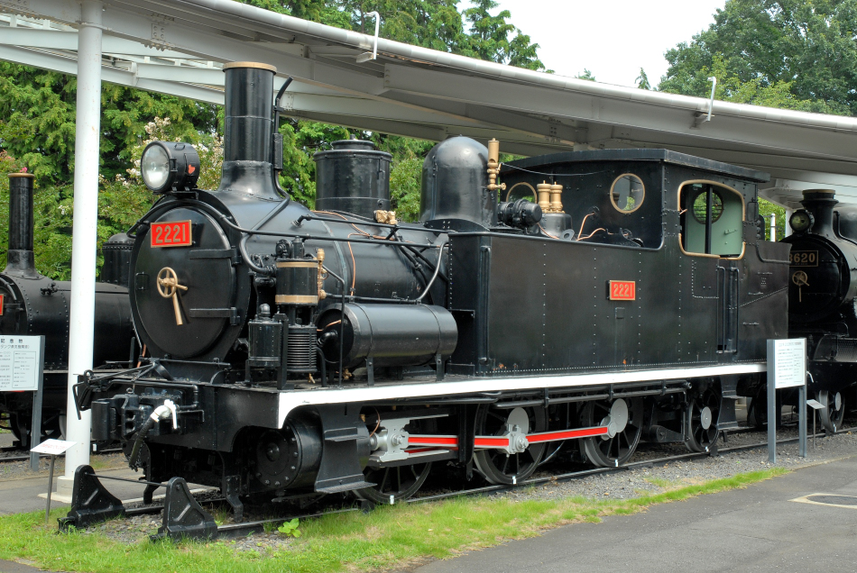 2221は1905年にNorth British Locomotives, Hyde Park Worksにて新製,陸軍野戦鉄道堤理部にNo.470として配置され日露戦争主戦場の北鮮・南満方面で使用されたCタンク機です。1907年4月1日に南満州鉄道に移管され現地で使われたあと1908年大陸から国内に帰還,1909年10月1日に2221に改番されています。国内では熊本,早岐,鹿児島で入換などに使われ,1943年に青森機関区,1945年には東能代区,1955年からは土崎工場で使われました。1960年5月7日に廃車となり1962年10月1日から青梅鉄道公園で保存されています。 (2022/12/17追加) |