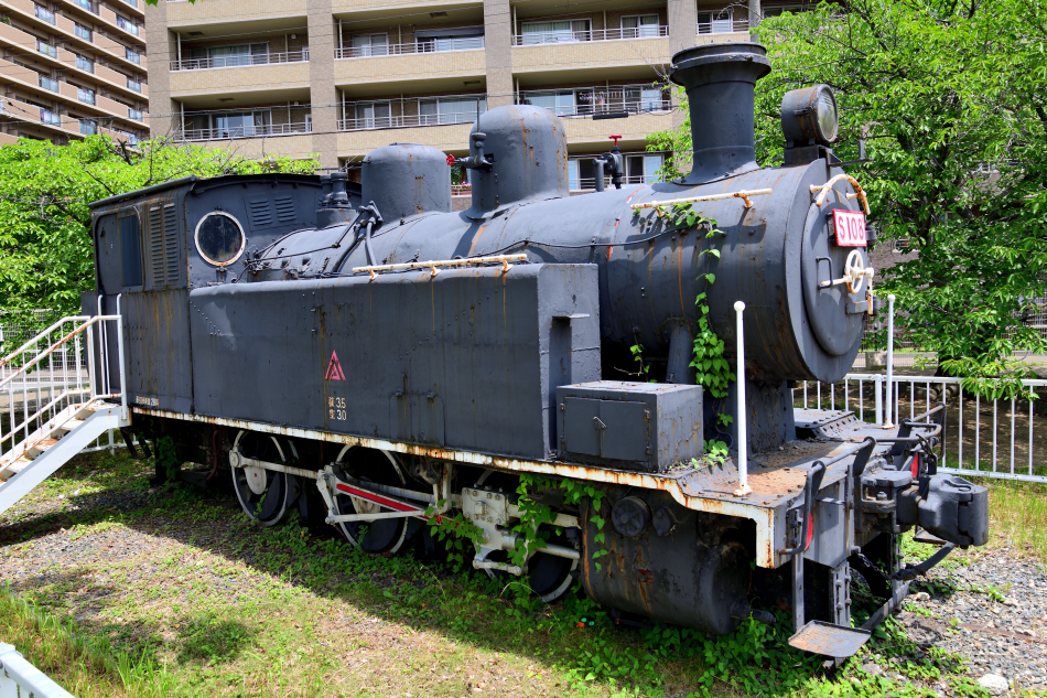 | No.D850_240619-073 2024年6月19日 S108 小寄公園 この機関車はCタンクで,1942年に石原産業が中国の海南島でのリン鉱石運搬用に日本車輌名古屋工場で製造したものですが,戦局の悪化で海南島には輸送できず,八幡製鉄で使われていたようです。1946年に石原産業四日市化学工場専用線に移籍し1967年10月まで使用されました。 (2024/07/12追加) |