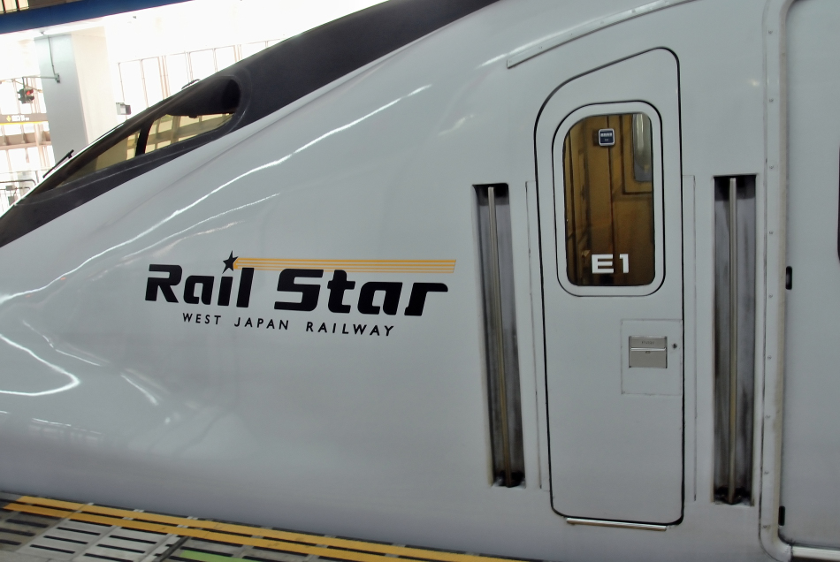 Rail Starマークが誇らしげなE1編成の新大阪方乗務員扉付近。指定席の2&2シートやサイレントカーなどグレードの高いサービスが人気でした。 (2022/09/01ワイド化) |