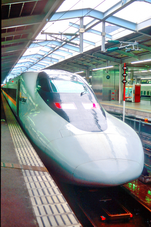 東京を出る先行試作車,C1編成。先頭車のノーズは量産車より70cm短いこと,連結器カバーに取っ手がついていること,先頭車の雨樋が上方についていること,公衆電話が15号車にはなく16号車に設置されている,などが違っています。この写真からは,連結器カバーの取っ手と雨樋が確認できます。 | |||||||||||||||||||||||||||||||||||||||||||||||||||||||||||||||||||||||||||||||||||||||||||||||||||||||||||||||||||||||||||||||||||||||||||||||||||||||||||||||||||||||||||||||||||||