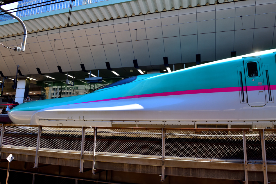 E5系には"はやぶさ"をイメージしたJR東日本のロゴマークが入っています。3月26日の北海道新幹線 新青森‐新函館北斗間開業直前で,はやぶさ17号は新青森行きでした。 | |||||||||||||||||||||||||||||||||||||||||||||||||||||||||||||||||||||||||