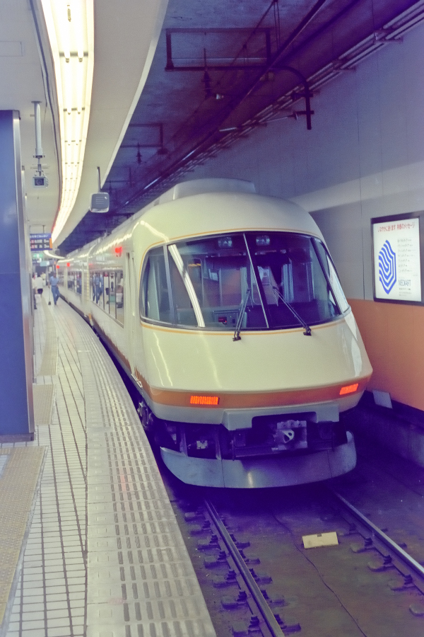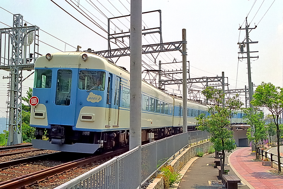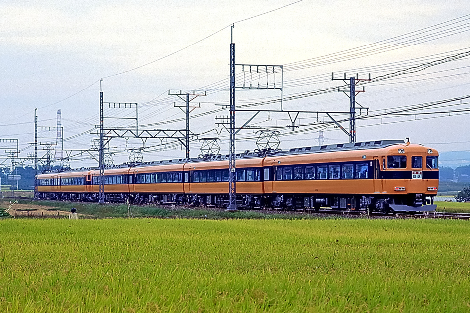 上本町 ク23100‐モ23200‐モ23300‐モ23400‐モ23500‐ク23600 賢島 上本町行きの伊勢志摩ライナーは上本町方がデラックスカー,賢島方4両はレギュラーカーとなっています。ネガが多少変色してしまっていますが塗色は今でも鮮やか。 (2024/04/02ワイド化) |
