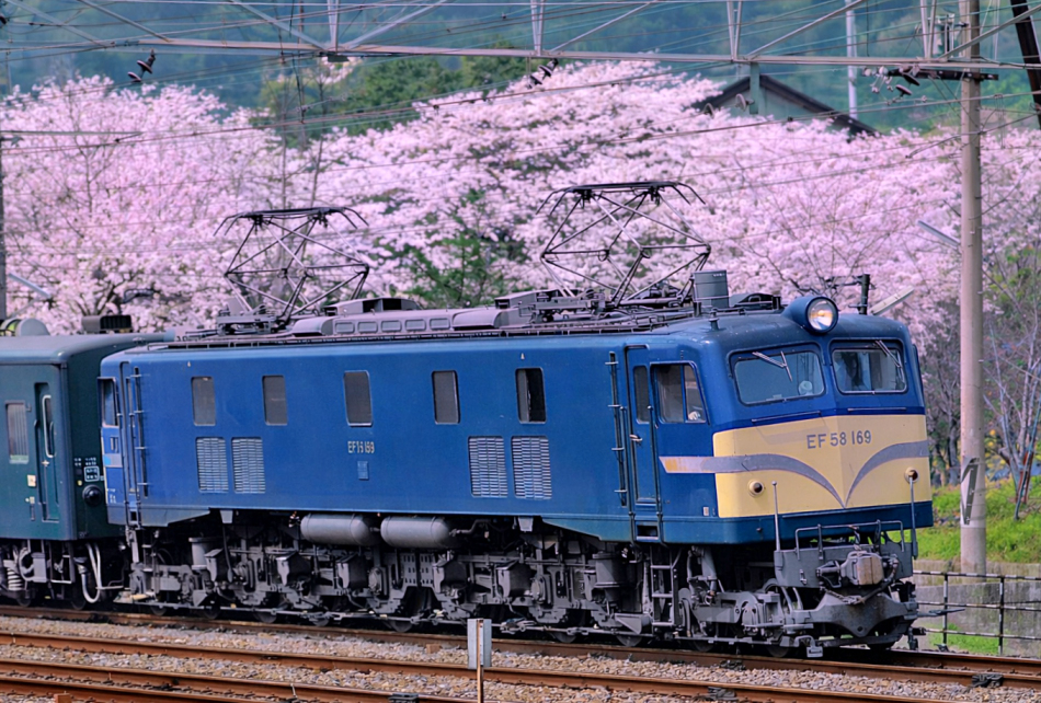 満開の桜並木を駆け抜ける169号機牽引の荷物列車。ネガの変色が酷く手の施しようもない状態でしたがAI技術の進歩により見事に復活しました。 (2006/01/14追加 2023/01/17ワイド化 2026/03/01ChatGPTによるネガ変色修正処理) ![]() |