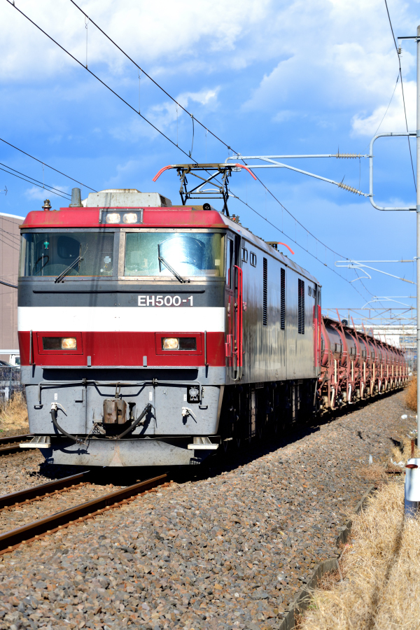 | No.D850_250108-006 2025年1月8日 EH500 1+タキ1200 5094レ 安中貨物 常磐線 勝田←佐和 いよいよ廃止になる安中貨物,陽射しはほぼ正面でサイド順光にならないので面縦で撮影。 (2025/01/08追加) ![]() |