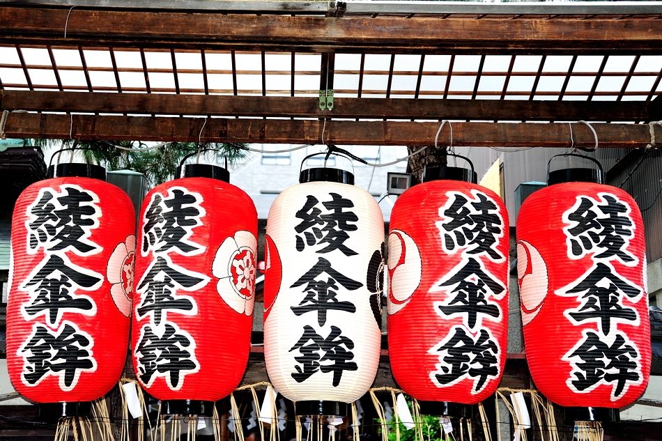 綾のロゴが入る駒形提灯