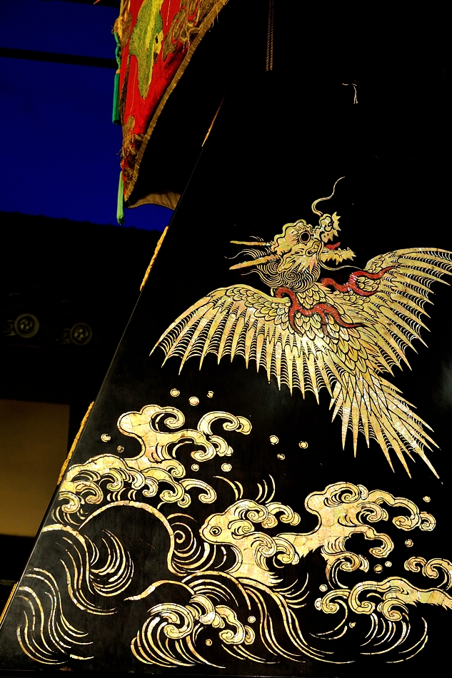 | 艪の高欄下、水引に刺繍された麒麟 |