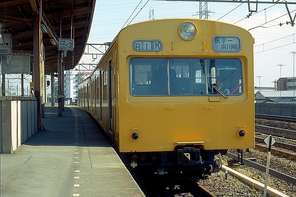 浜川崎/奇 クモハ101+クモハ100 尻手 この尻手‐浜川崎間の4.1キロの南部支線には黄色5号の101系2両が充当。 (2015/01/17追加) ![]() |