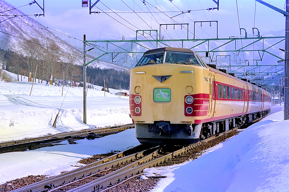 | No.N8204‐21 1982年3月8日 新潟運転所 クハ183[1001‐1032]他 12両 特急 とき 上越線 岩原スキー場前(臨)←越後中里 |