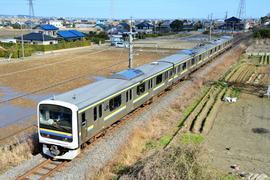 | No.D700_120212‐47 2012年2月12日 千マリC407+C編成 クハ209‐2001他 10両 内房線 巌根→木更津 |