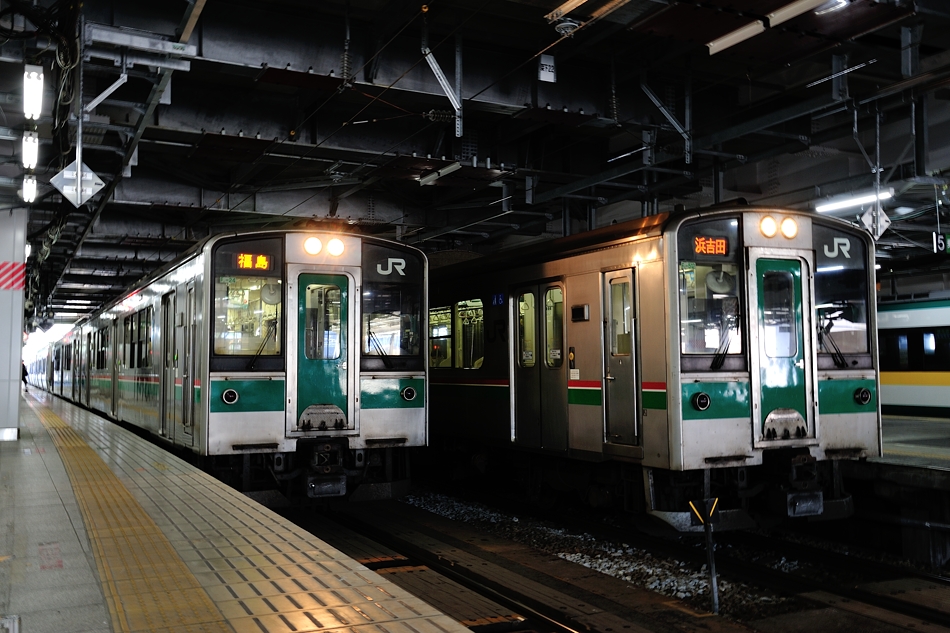 仙台/奇 クモハ701‐1508+クハ700‐1508 郡山 東北本線上り郡山行き普通列車。F2‐508編成。 |