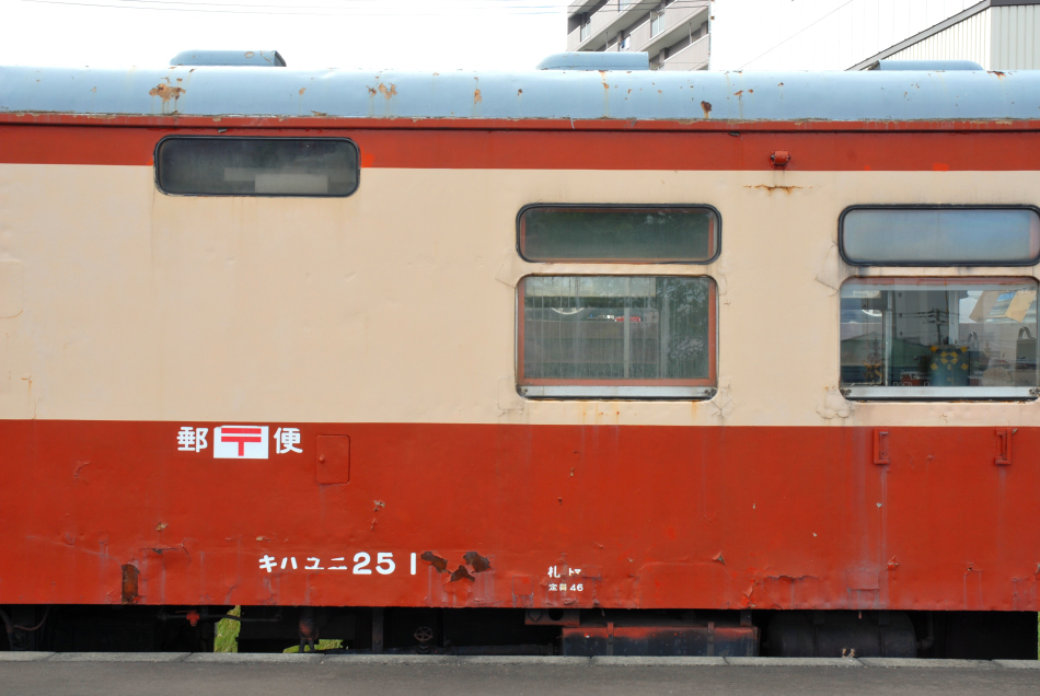 寒地けの合造車キハユニ25。郵便マークにバス窓,涙が出ます。所属は札トマ(苫小牧)。 (2009/08/21追加 2022/07/13ワイド化) |