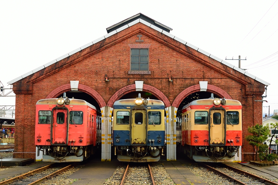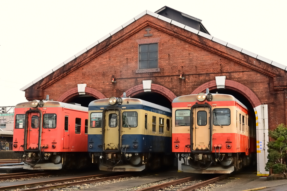 見納めの光景。美しいレンガ庫に並ぶキハ3両。 (2010/03/06追加 2022/07/13ワイド化) ![]() |