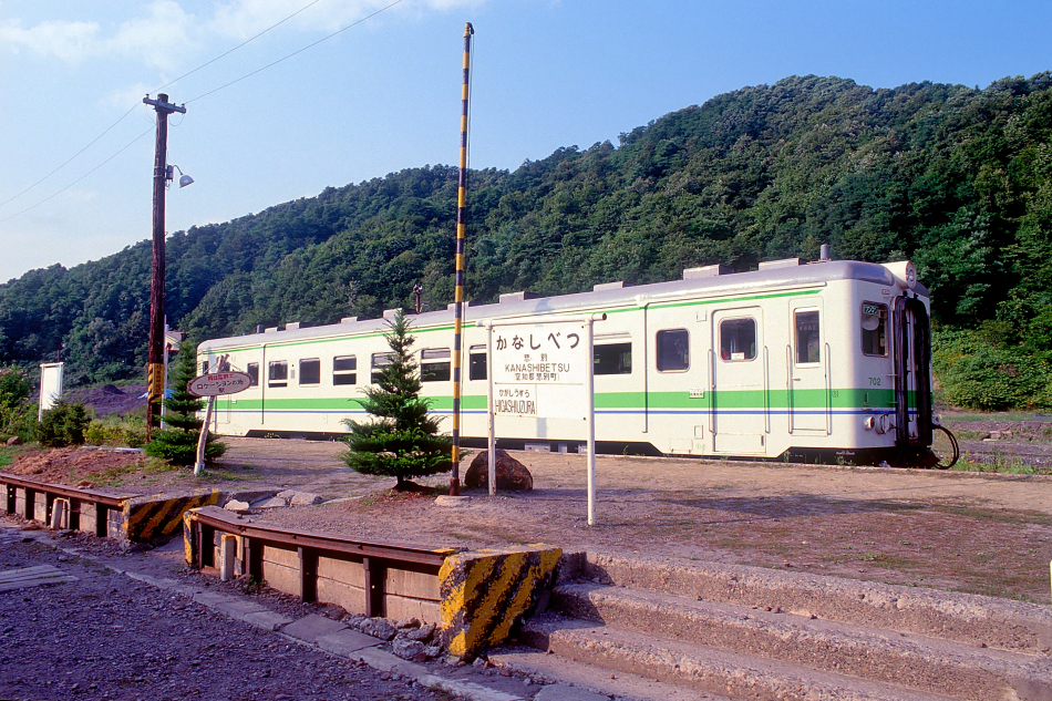 函館本線の通称上砂川支線の終点,上砂川に停車中のキハ22 702。上砂川支線は1918年に開業した砂川−上砂川間7.3kmの路線で,1994年5月16日に廃止になりました。上砂川は倉本聰脚本のテレビドラマ「昨日,悲別で」のロケ地となったため,悲別の駅名標がありました。 (2022/06/16追加) |