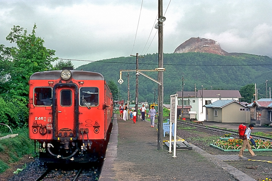 壮瞥に停車中のキハ22と噴煙を上げる昭和新山。伊達紋別−倶知安間を結んでいた胆振線は1986年11月1日にバス転換で廃止されました。09年の家族旅行で支笏湖〜洞爺湖を回った際に胆振線の廃線跡を通りかかり,当時を思い出して追加しました。 (2009/08/20追加 2022/07/13ワイド化) ![]() |