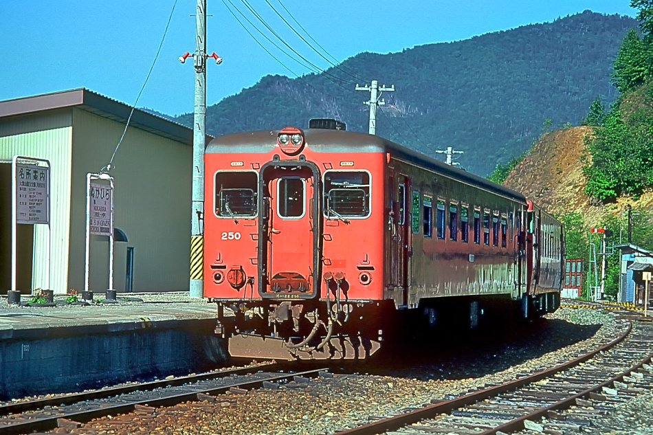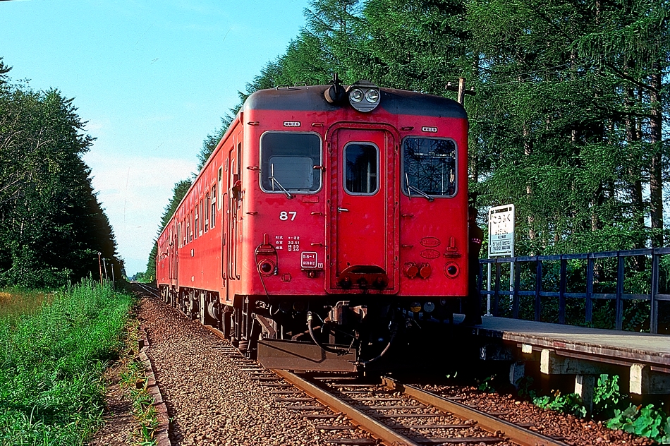 伊達紋別の0番線ホームに到着したキハ22 85他の2連。上の246とはタイフォンカバーの形状が異なります。タブレットキャッチャー装備。ちなみにフィルムはKRで,深度が浅くなっています。 (2022/07/13ワイド化) ![]() |