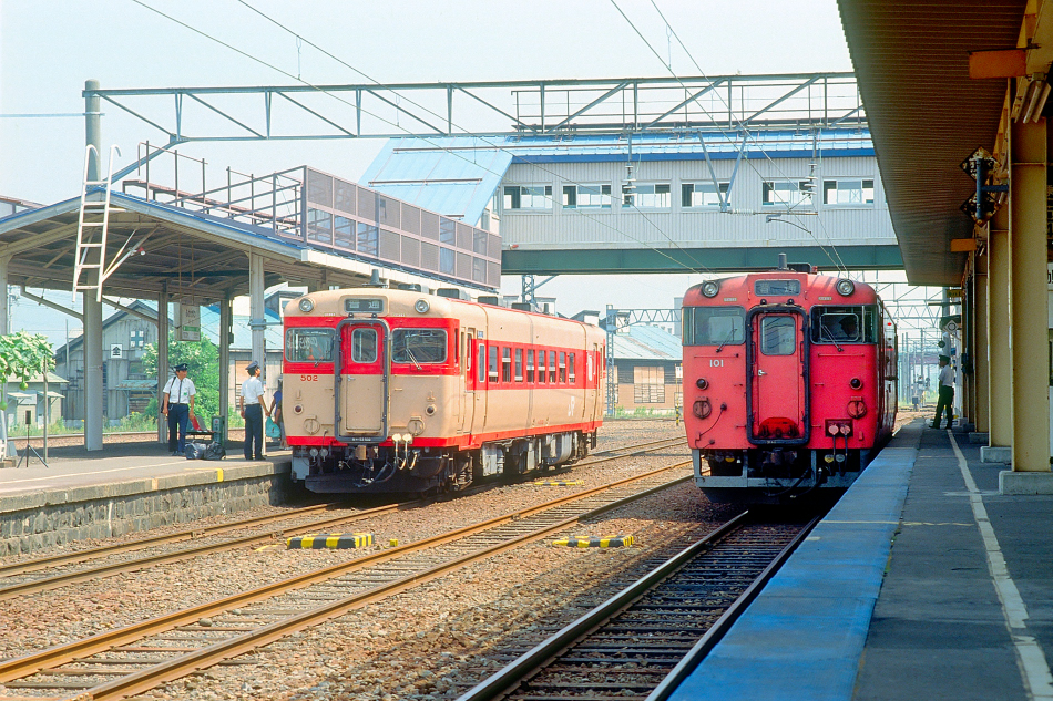 | No.193‐08 1990年8月6日 左 キハ53 502 右 キハ40 101 留萌本線 深川 |