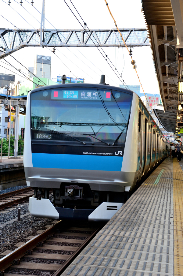 | No.D700_140731‐10 2014年7月31日 宮ウラ135編成 クハE232‐1035他 10両 各駅停車 南浦和行き 京浜東北線 神田 南浦和/奇 クハE233‐1035+サハE233‐1235+モハE233‐1435+モハE232‐1435+サハE233‐1035+モハE233‐1035+モハE232‐1035+モハE233‐1235+モハE232‐1235+クハE232‐1035 大船 神田を発車する南浦和行き京浜東北線E233系1000番台,宮ウラ135編成。 (2014/08/02追加 2023/09/09写真変更) |