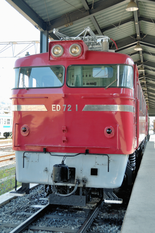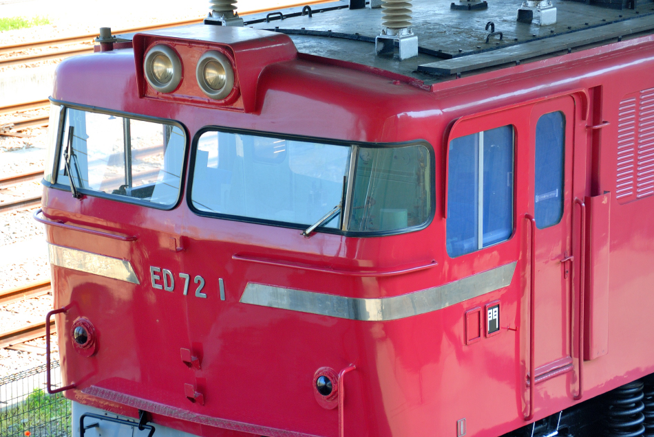 | No.D200_20110429‐104 2011年4月29日 ED72 1 九州鉄道記念館 量産型ED72の洗練された姿を見たいのですが,高望みというもので1号機がこうして美しい状態で保存されているだけでも感謝すべきことなのでしょう。 (2023/02/23ワイド化) |
