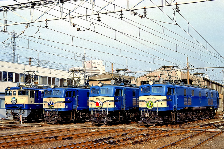 | No.90‐17 1985年1月27日 EF651132,EF58 126, EF58 127,EF58 150 宮原機関区 |
