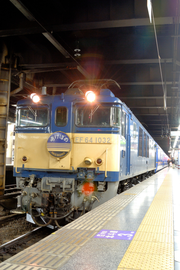 | No.D200_100227‐18 2010年2月27日 EF64 1032+24系25形 あけぼの 東北本線 上野 上野駅13番線で発車を待つEF64 1032。双頭形カプラを装備しています。 (2010/03/07追加 2022/04/01ワイド化) ![]() |