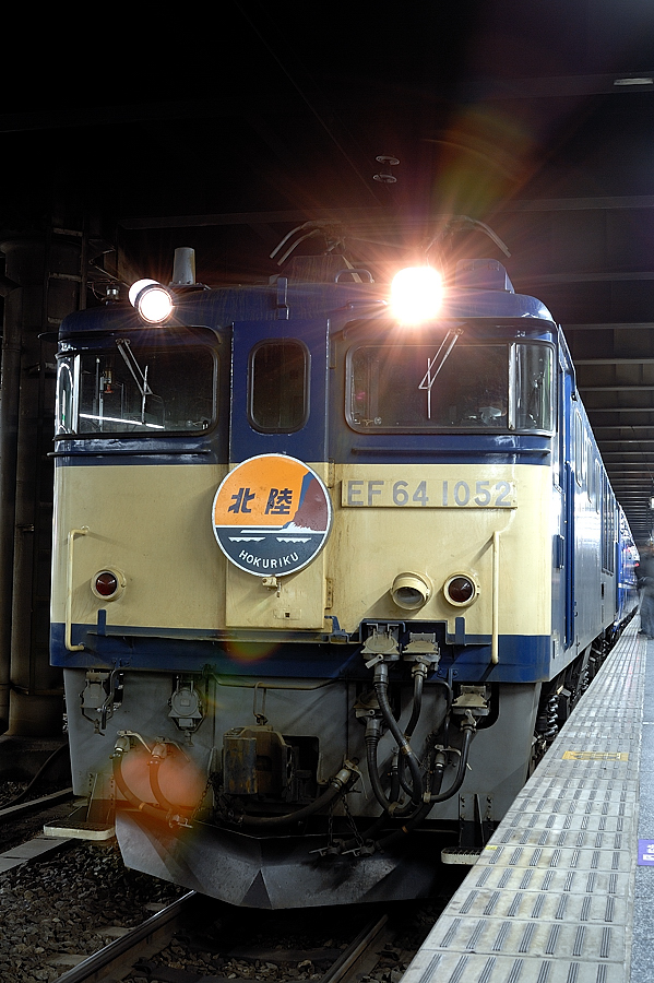 | No.D200_100227‐28 2010年2月27日 EF64 1052+14系 寝台特急 北陸 東北本線 上野 3月12日で北陸廃止のため,上野駅13番線はごった返していました。ファン注視の中,発車を待つEF64 1052。 (2010/03/07追加) |