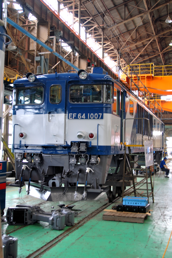 | No.D200_100522‐51 2010年5月22日 EF64 1007 JR貨物大宮車両所 1END側。台車,自動連結器,集電装置などが外されバラバラになっています。 (2023/02/03追加) |
