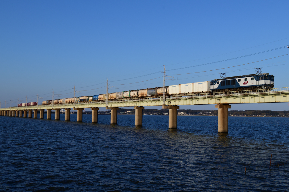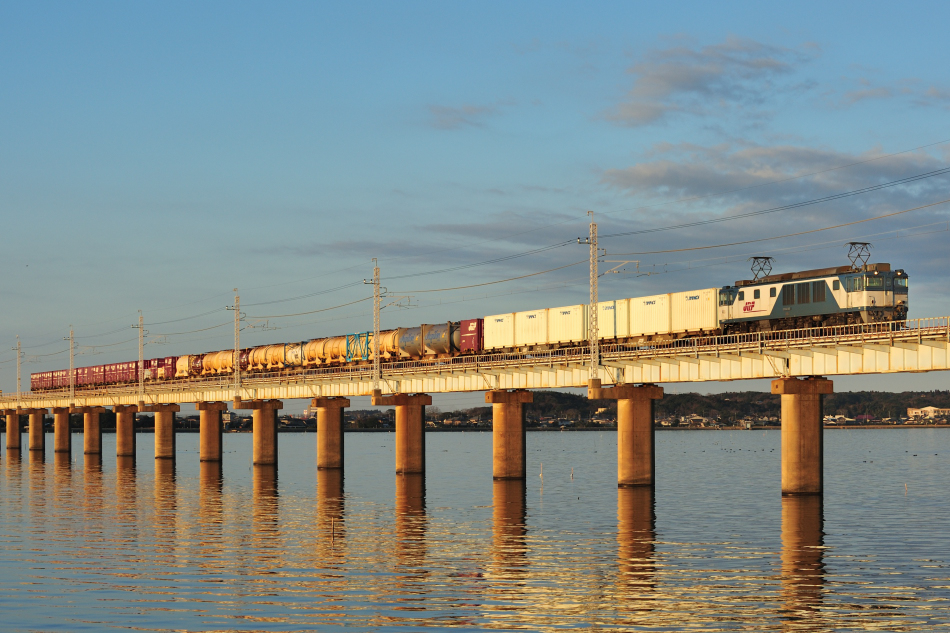 北浦鉄橋を渡るEF64 1035牽引の貨物。ニコンD850投入によりD700との重連運用が可能になり,久しぶりに平行プレートとジュラが登場しました。 (2020/02/24追加) ![]() |