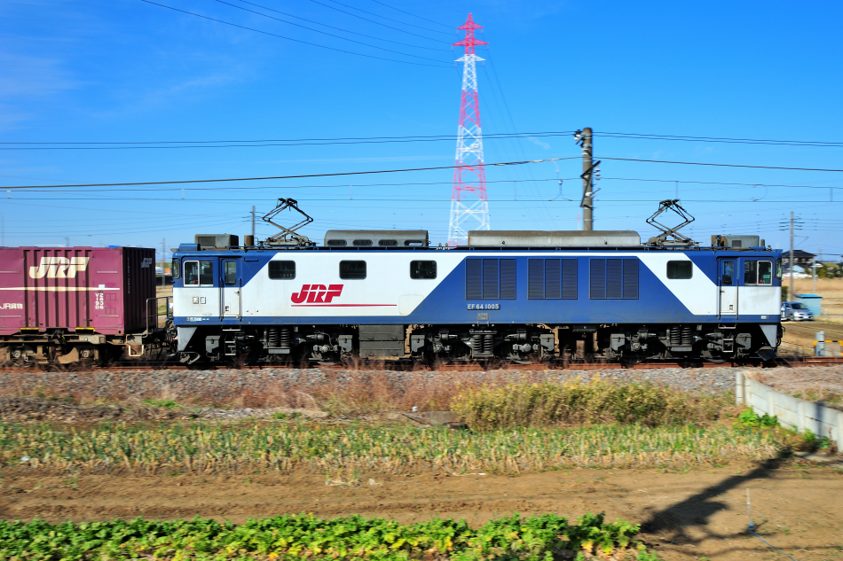 更新色をまとったEF64 1017が牽引する下りコンテナ列車。 (2023/02/03追加) |