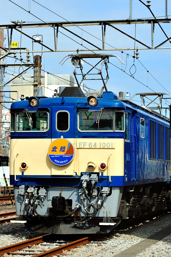 | No.D700_181013‐128 2018年10月13日 EF64 1001 高崎駅構内 北陸のヘッドマークも誇らしげ。次回は是非走行を撮りたいですね。 (2018/10/14追加) ![]() |