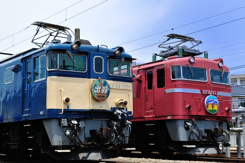 出羽ヘッドマークを付けたEF641001とEF8197「鳥海」の並び。 (2019/06/02追加) |