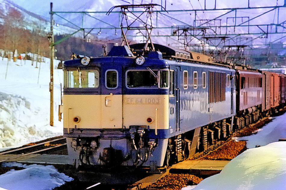 | No.134‐36 1982年3月8日 EF64 1003+EF16+ワム 上越線 岩原スキー場前(臨)←越後中里 |