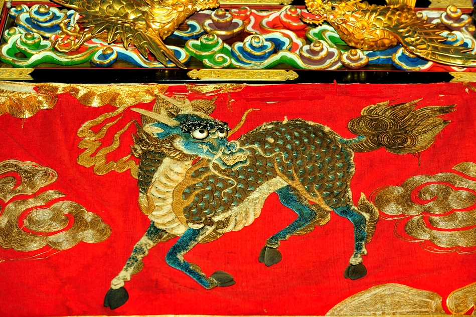 | 艪の高欄下、水引に刺繍された麒麟 |