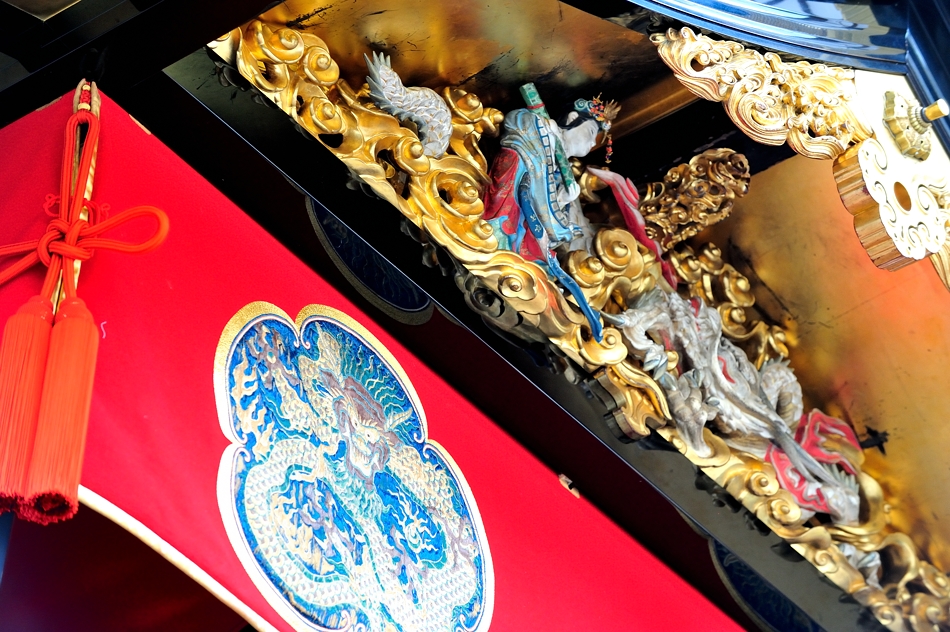 | 宵山用の天水引は龍紋。破風飾 |