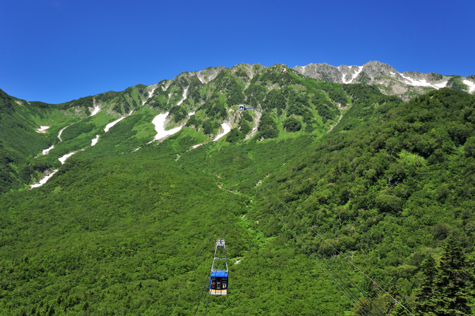 | 黒部平から立山ロープウェイと立山主峰 (画像タッチで山名表示) 2015/08/09 |