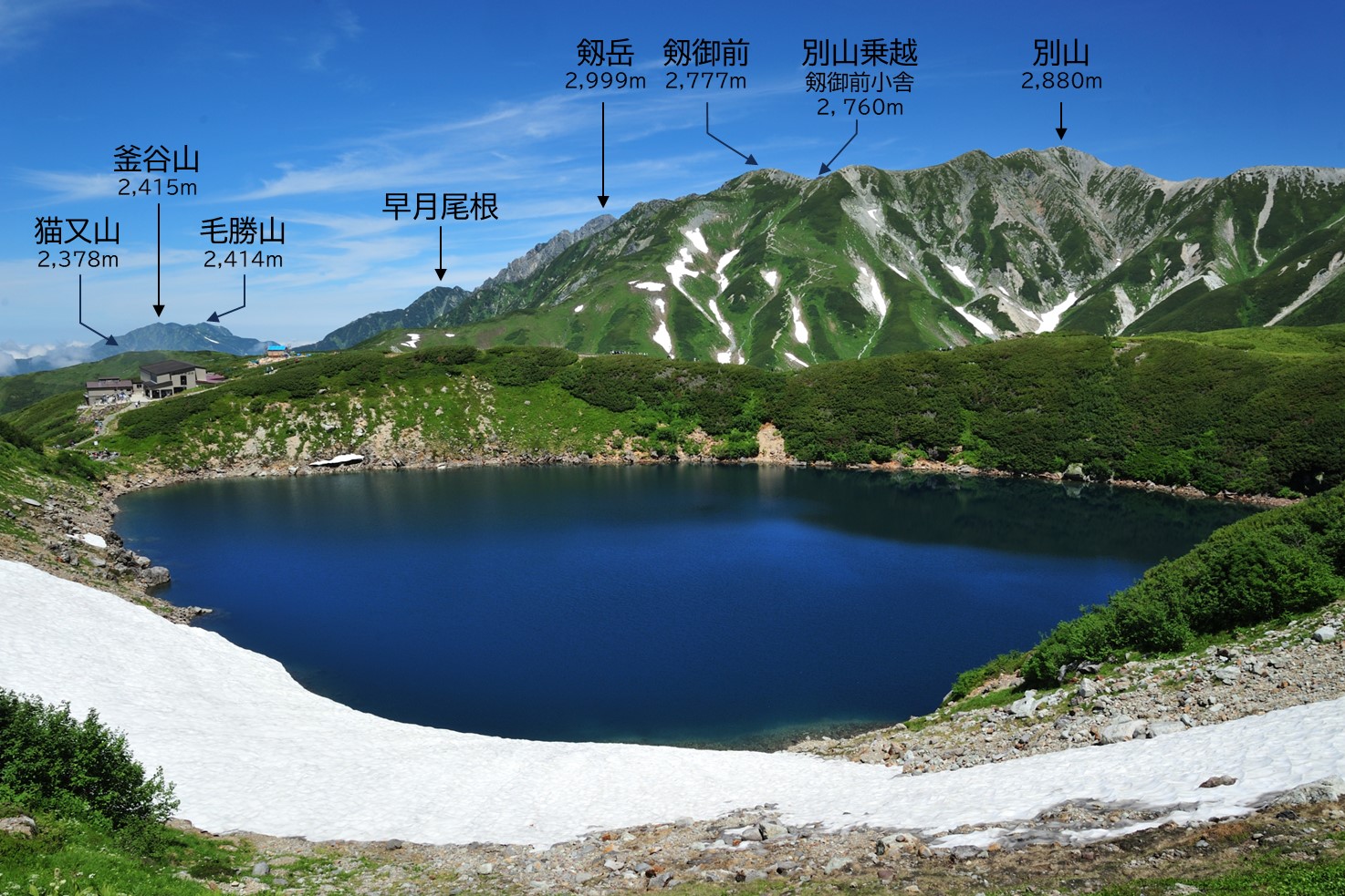 | ミクリガ池と剱岳・別山 (画像タッチで山名表示) 2015/08/09 |