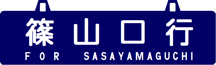 福知山線でDD51に牽引され武田尾方面に向かう旧型客車列車。こちらのサボも吊り下げ式。 (2022/10/06ワイド化) ![]() |