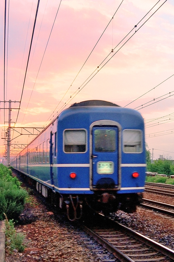 | No.N7805‐21 1978年7月 14系 スハネフ14 あかつき 東海道本線 芦屋←摂津本山 早朝の阪神間を走る「あかつき」。 (2009/04/11追加 2022/09/21ワイド化) |