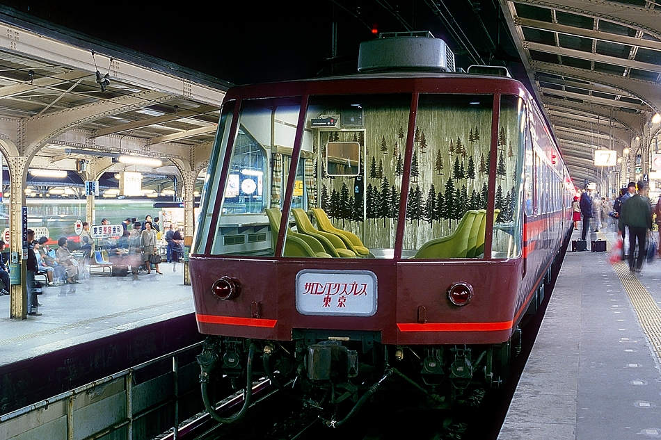 東京駅旧7番線に到着した「サロンエクスプレス踊り子」。この展望席があこがれでした。東京駅はこのあと東北上越新幹線乗り入れのため大改造され左の5,6番線(第3プラットフォーム)は高架化され新7,8番線に,右側の第4プラットフォームは新9,10番線となり,現在は上野東京ラインに使用されています。 (2012/09/02追加 2018/01/13再スキャン・ワイド化) ![]() |