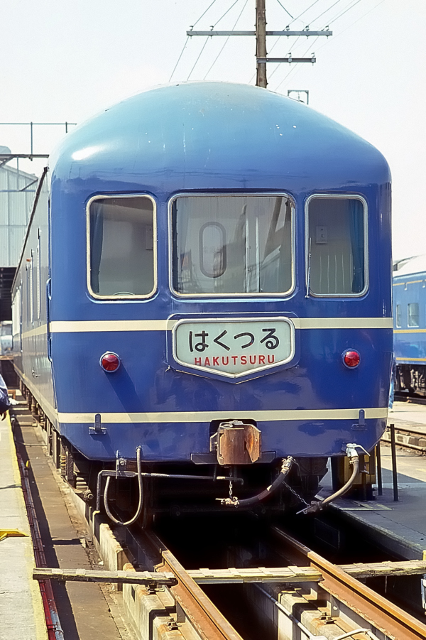 | No.156‐2 1988年4月10日 尾久客車区 カヤ21 はくつる やはり窓上の白帯が消されて間が抜けた感がありますが,やはりオリジナルのテールサインは,無理やり嵌め込んだ絵入りマークと違ってバランスがよく美しい。 (2008/10/13追加 2022/09/23ワイド化) |