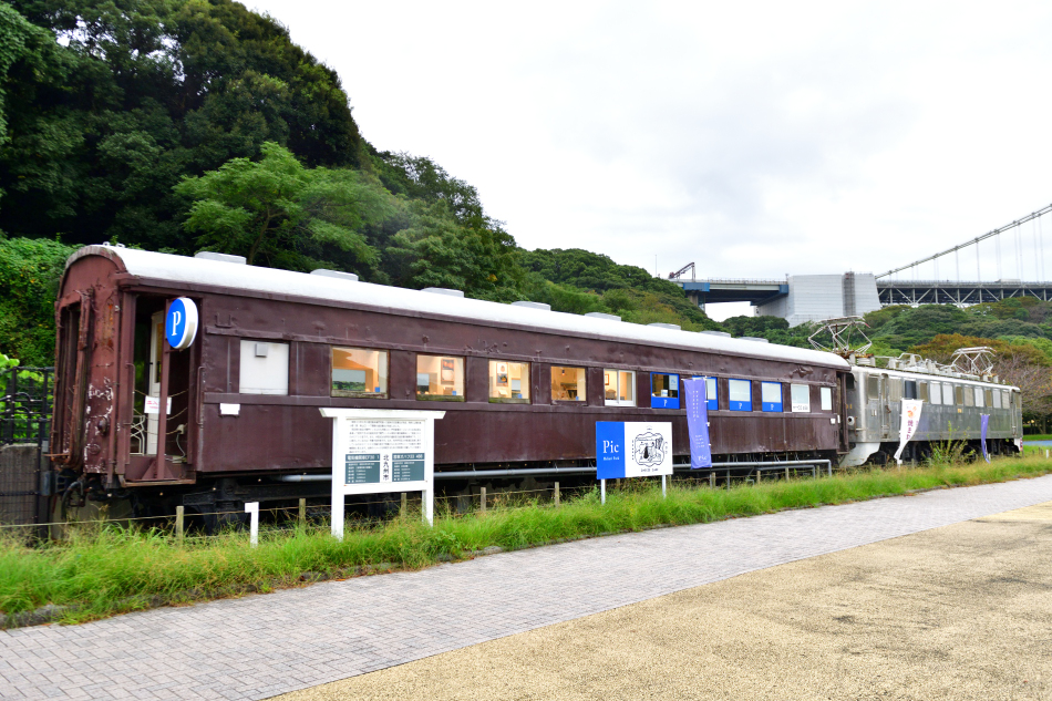 関門橋を望む公園に留置されており,休日に運転される門司港レトロ観光鉄道の関門海峡めかり駅前に位置するため比較的アクセスは容易です。ただしこの日は平日だったのでレンタカーで訪問しました。 (2025/10/21追加) |