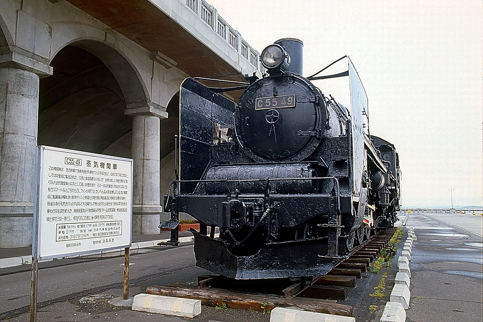 | No.193-38 1990年8月7日 C55 49 稚内 北防波堤ドーム スノープローとデフが翼のように美しい。 |